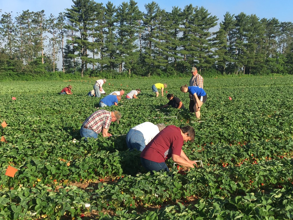 We will be open for u-pick strawberries and peas from 7am until noon this Friday, Saturday, and Sunday.