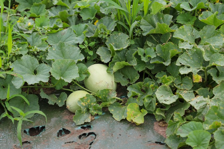 The muskmelon we transplanted on plastic are blossoming and have some small melons. We expect to start having muskmelon starting around early/mid August.