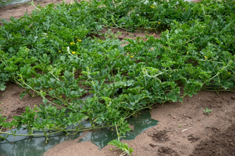 The watermelon we transplanted on plastic are also blossoming. We expect to start having watermelon starting around mid August.