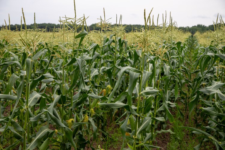 The sweet corn is tasseling and cobs have formed with white silk on top. Over the next week the cobs will continue to grow and the silk will turn brown. We expect the sweet corn to be ready later in July.