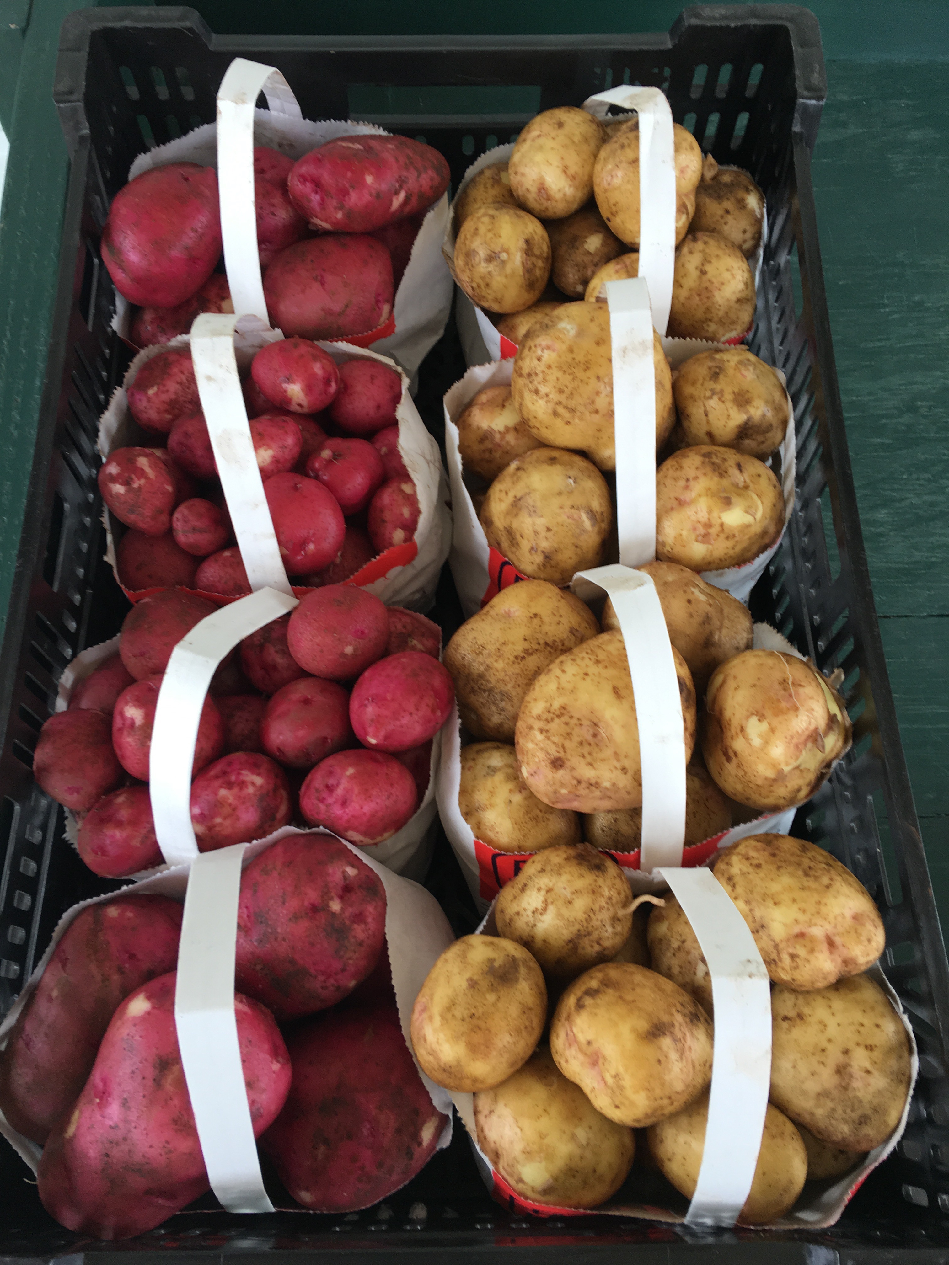 We grow both Yukon Gold and a red variety and sell them in 4lb. bags.